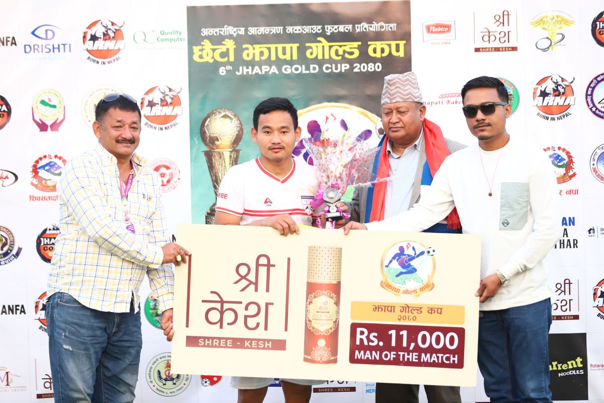 खेलको प्लेयर अफ दि म्याच विजेता टिम चर्च ब्वाइजका सञ्जित राई (लाहुरे) भए । उनले ११ हजार रुपैयाँ पुरस्कार पाए ।