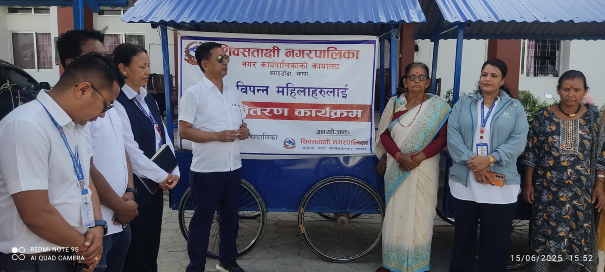 गोविन ल्वागुन, शिवसताक्षी । झापाको शिवसताक्षी नगरपालिकाले नगरका विपन्न १५ जना श्रमिक महिलाहरुलाई जिविकोपार्जनको लागि ठेलागाडा दिएको छ ।