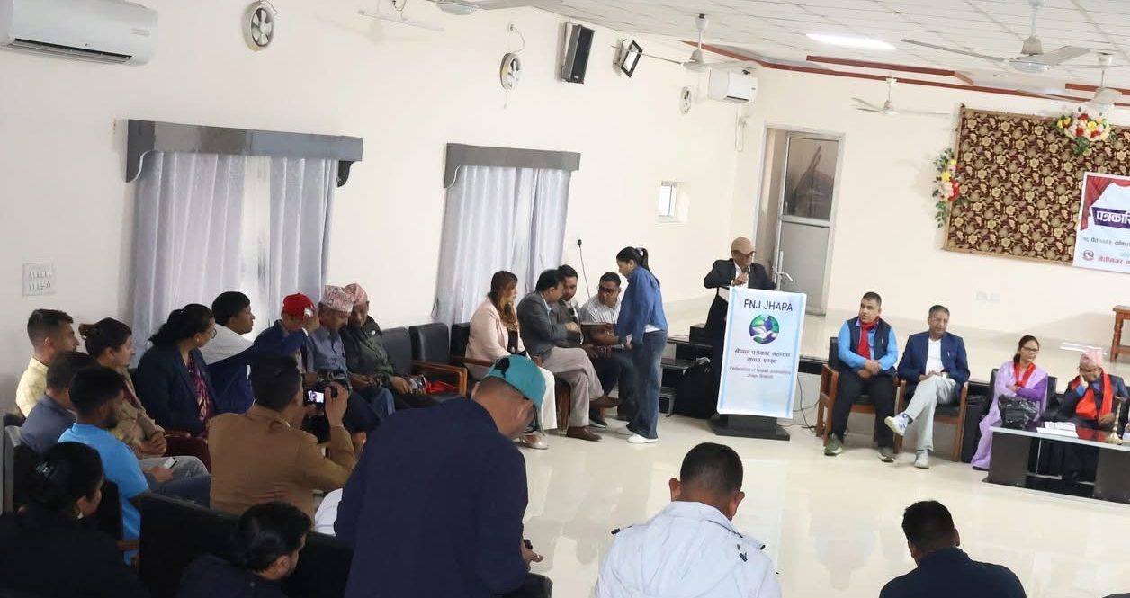 नेपाल पत्रकार महासंघ झापाका अध्यक्ष एकराज गिरीको अध्यक्षतामा भएको कार्यक्रममा प्रमुख अतिथि खड्का, नेपाल पत्रकार महासंघका पूर्व केन्द्रिय महासचिव चन्द्र भण्डारी, कोशी प्रदेश समिति उपाध्यक्ष अम्बिका भण्डारीले शुभकामना व्यक्त गरेका थिए । त्यसक्रममा पत्रकारिताको शुद्धीकरण र सदृढीकरणका लागि ११ बुँदे ‘झापा संकल्प–पत्र २०८२’ पारित गरिएको छ ।