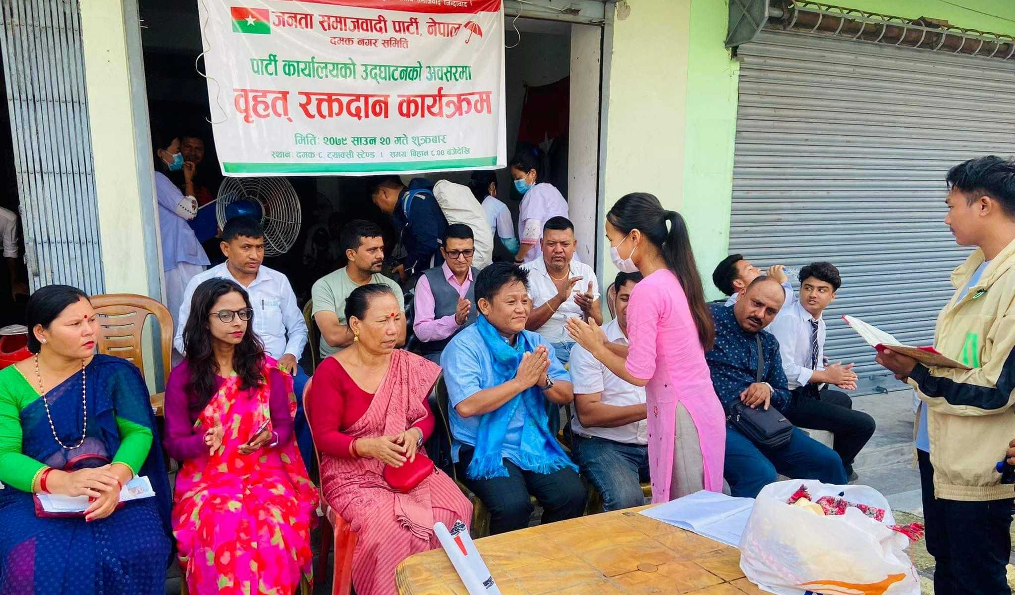 जसपा दमक नगरले गर्यो कार्यालय उद्घाटन, रक्तदानमा ३० पिन्ट रगत जम्मा
